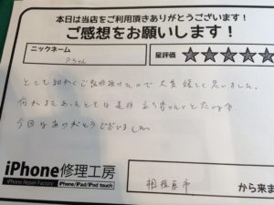 iPhone6sの修理で相模原市からご来店のお客様