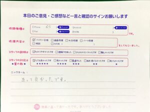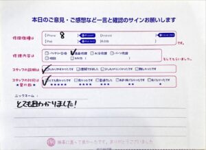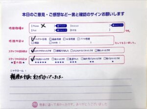 今回はiPhoneXのバッテリー交換でご来店されたお客様から頂いたお声をご紹介します。