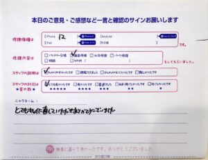 今回はiPhone12Proの画面修理でご来店されたお客様から頂いたお声をご紹介します。