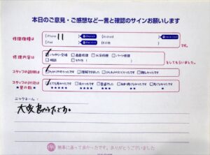 【iPhone11のバッテリー交換でお越しのお客様へのスタッフからのコメント】