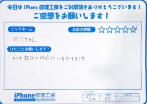 【iPhone6Sのバッテリー交換でお越しののりちゃん様からの評価】