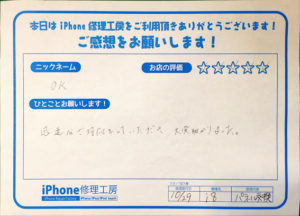 【iPhoneの修理でお越しのこたみ様からの評価】